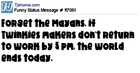 X says Forget the Mayans, if Twinkies makers don't return to work by 5 pm, the world ends today.