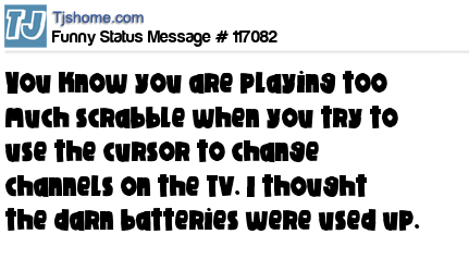 X is You know you are playing too much scrabble when you try to use the cursor to change channels on the TV. I thought the darn batteries were used up.