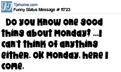 X  • Do you know one good thing about Monday? ...I can't think of anything either. OK Monday, here I come.