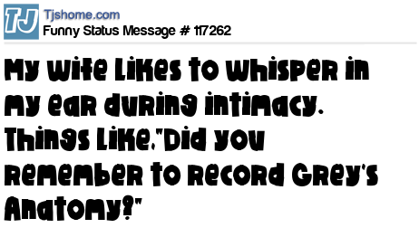 X says My wife likes to whisper in my ear during intimacy. Things like,"Did you remember to record Grey's Anatomy?"