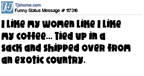 - # 160782 I like my women like I like my coffee.. in a burlap sack shipped over from a 3rd world country