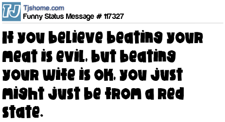 X If you believe beating your meat is evil, but beating your wife is ok, you just might just be from a red state.