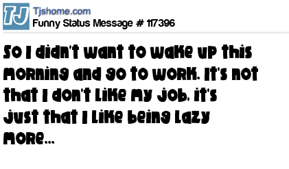 X so I didn't want to wake up this morning and go to work. It's not that I don't like my job, it's just that I like being lazy more...
