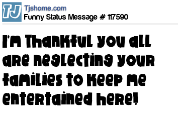 X says I'm Thankful you all are neglecting your families to keep me entertained here!