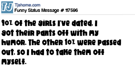 X says 90% of the girls I've dated, I got their pants off with my humor. The other 10% were passed out, so I had to take them off myself.