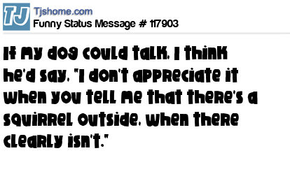 X says If my dog could talk, I think he'd say, "I don't appreciate it when you tell me that there's a squirrel outside, when there clearly isn't."
