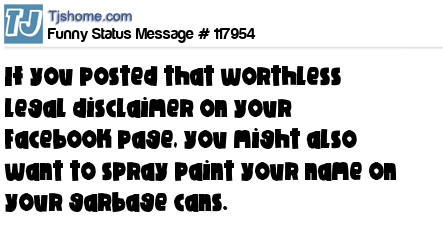 - # 117959 If you posted that worthless legal disclaimer on your Facebook page, you might also want to post that you won't be signing autographs when you get off of work at 5 today.