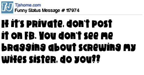 X says if it's private, don't post it on FB. You don't see me bragging about screwing my wifes sister, do you??
