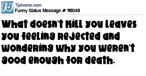 X says What doesn't kill you leaves you feeling rejected and wondering why you weren't good enough for death.