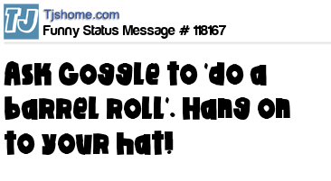- # 78259 Go to Google and type in.... "DO A BARREL ROLL"