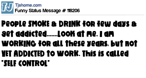 X is People SMOKE & DRINK for few days & get addicted.......Look at me. I am WORKING for all these years, but not YET ADDICTED to WORK. This is called "SELF CONTROL"