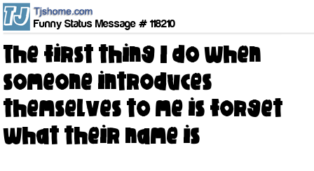 - # 117795 The first thing I do when someone introduces themselves to me is forget what their name is.