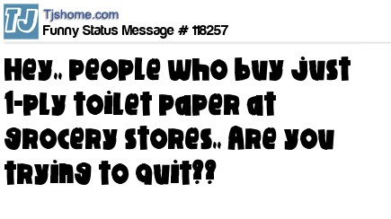 X Hey,, people who buy just 1-ply toilet paper at grocery stores,, Are you trying to quit??