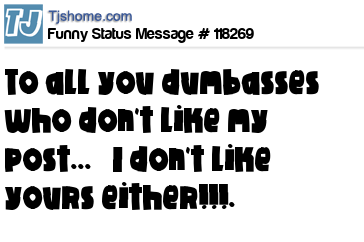 X says To all you dumbasses who don't like my post... I don't like yours either!!!.