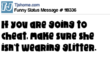 X says If you are going to cheat, make sure she isn't wearing glitter.