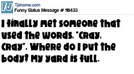 X I finally met someone that used the words, "Cray, Cray". Where do I put the body? My yard is full.