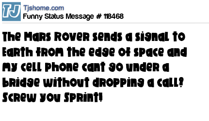 X The Mars Rover sends a signal to Earth from the edge of space and my cell phone cant go under a bridge without dropping a call? Screw you Sprint!