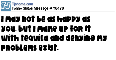 X says I may not be as happy as you, but I make up for it with tequila and denying my problems exist.