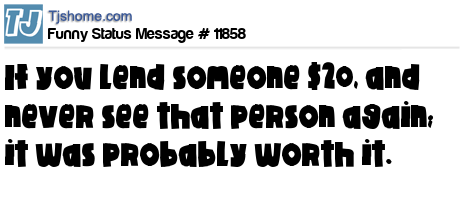 - # 167986 If you lend someone $20, and never see that person again; it was probably worth it!