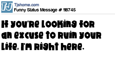X says If you're looking for an excuse to ruin your life, I'm right here.