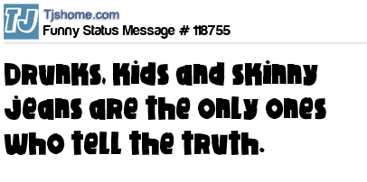 - # 131917 Drunks, kids and skinny jeans are the only ones that tell the truth.