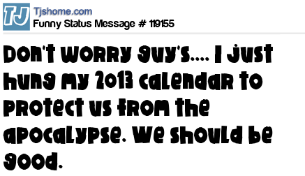 X says Don't worry guy's.... I just hung my 2013 calendar to protect us from the apocalypse. We should be good.