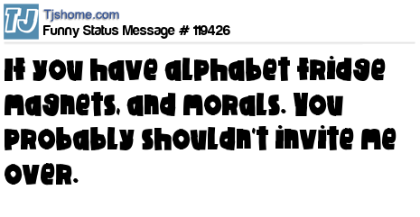 - # 185865 If you have alphabet fridge magnets and morals you probably shouldn't invite me over.