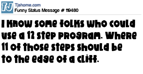 X I know some folks who could use a 12 step program. Where 11 of those steps should be to the edge of a cliff.
