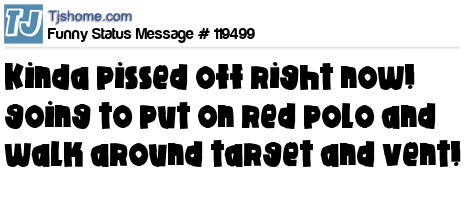 X is kinda pissed off right now! going to put on red polo and walk around target and vent!