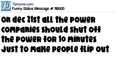X says on dec 21st all the power companies should shut off the power for 10 minutes just to make people flip out