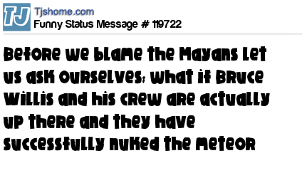 - # 119821 What if Bruce Willis and crew actually blew up the asteroid last night. Willis 1 - Mayans 0.
