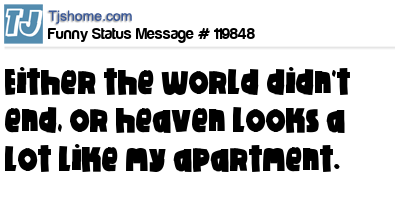 X says Either the world didn't end, or heaven looks a lot like my apartment.