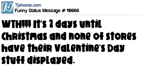 X WTH!!! It's 2 days until Christmas and none of stores have their Valentine's Day stuff displayed.