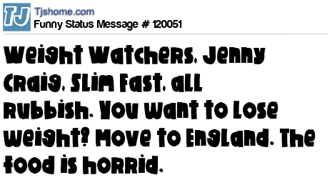 X Weight Watchers, Jenny Craig, Slim Fast, all rubbish. You want to lose weight? Move to England. The food is horrid.