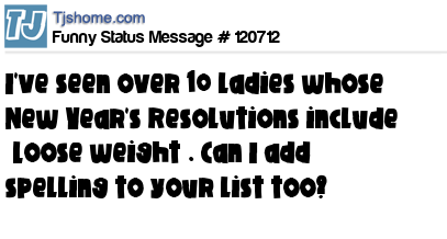 - # 120686 I've counted 8 people so far whose New Year's resolutions include "loose weight". Can I add spelling to your list too?