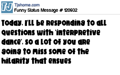 X Today, I'll be responding to all questions with 'interpretive dance', so a lot of you are going to miss some of the hilarity that ensues ツ