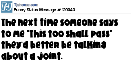 X says The next time someone says to me "This too shall pass" they'd better be talking about a joint.