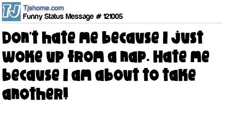 X says Don't hate me because I just woke up from a nap. Hate me because I am about to take another!
