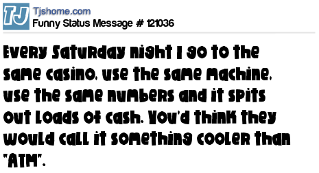 X Every Saturday night I go to the same casino, use the same machine, use the same numbers and it spits out loads of cash. You'd think they would call it something cooler than "ATM".