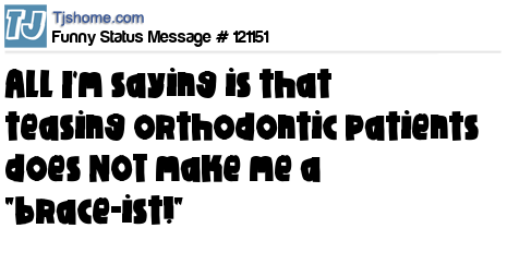 X All I'm saying is that teasing orthodontic patients does NOT make me a "brace-ist!"