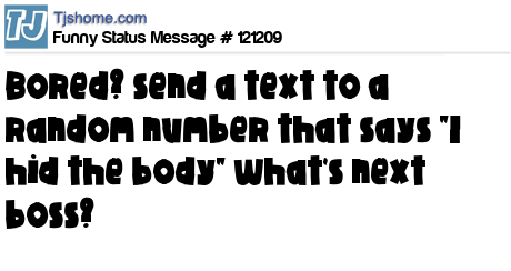 - # 90920 whenever your bored send this text to a random number.. "I hid the body."