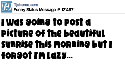 - # 121464 I was going to post a picture of the beautiful sunrise this morning but I forgot I'm a lazy sob...