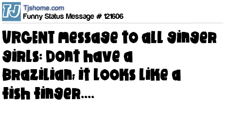 X URGENT message to all ginger girls: Dont have a Brazilian; it looks like a fish finger....