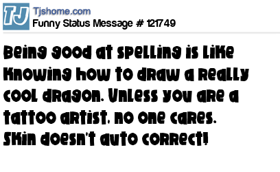 X says Being good at spelling is like knowing how to draw a really cool dragon. Unless you are a tattoo artist, no one cares. Skin doesn't auto correct!