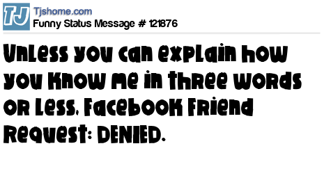 X is Unless you can explain how you know me in three words or less, Facebook Friend Request: DENIED.