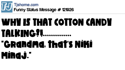 - # 113318 Why is that cotton candy talking? Grandma, that's Niki Minaj.