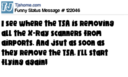 X I see where the TSA is removing all the X-Ray scanners from airports. And jsut as soon as they remove the TSA, I'll start flying again!