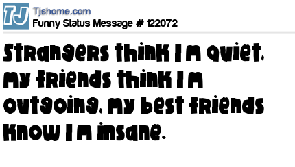 X is Strangers think I’m quiet, my friends think I’m outgoing, my best friends know I’m insane.