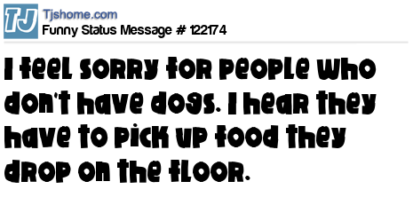 - # 147244 I feel sorry for people who don’t have dogs. I hear they have to pick up food they drop on the floor