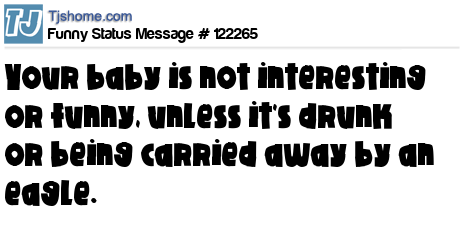 X says Your baby is not interesting or funny, unless it's drunk or being carried away by an eagle.